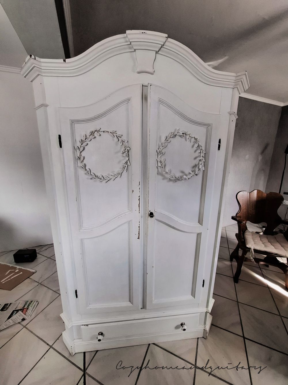 Manch einer von Euch kennt sicher von Bildern aus meinen vergangenen Blogs noch diesen weißen Schrank, der schon immer in der Nische in unserem Wohnzimmer gestanden hat. Es scheint, als wurde diese Nische nur für den Schrank gemacht, so perfekt passt er dort hinein. Oder der Schrank nur für diese Nische (im letzten Bild des Beitrags zu sehen). Aber das ist einfach purer Zufall! ;-))))